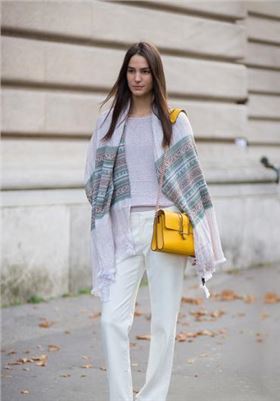 將大一點的絲巾像披肩一樣披在身上,休閑又愜意,特別適合現在這種乍暖還寒的天氣。