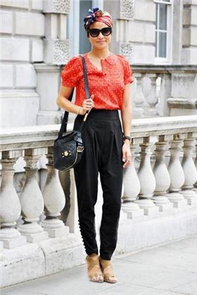 一條色彩艷麗的絲巾能讓一個沉悶的造型生動起來,將絲巾像領結一樣系于頸間,看起來優雅活潑。