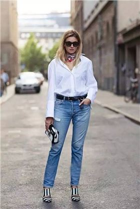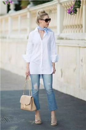 對于白襯衫,想來大家并不會陌生,但是放眼街頭你會發現,女孩一般總喜歡用白襯衫搭配褲裝,這樣的裝扮固然簡約大氣,但也確實給人的感覺比較寡淡,容易千篇一律。而只要你能夠加上一條絲巾作為點綴,就能夠立刻打破單調,讓你的造型變得更加別致吸睛。