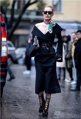 很多妹紙在選擇深V的時候,總會產生一種會不會太暴露的猶疑,而導致不敢嘗試深V的衣服。這時候一條絲巾便派上了很好的作用,全力釋放你的性感的同時不忘帶給你一種安全感,小小的絲巾系在頸間,讓時尚的效果更加出眾。