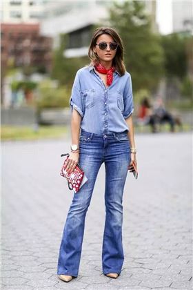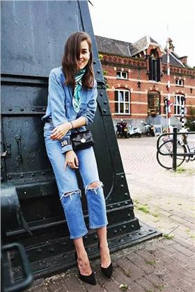 絲巾的存在對于牛仔襯衫便是錦上添花,和紅色絲巾搭配在一起更是無與倫比的美妙,打造出非常經典時髦的紅藍配。一抹靚麗的紅色系在頸間,吸睛養眼的程度剛剛好。