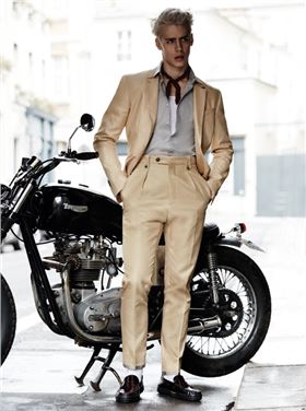 兩紐棉質西裝 棉質襯衣 絲質小圍巾 均為 Corneliani