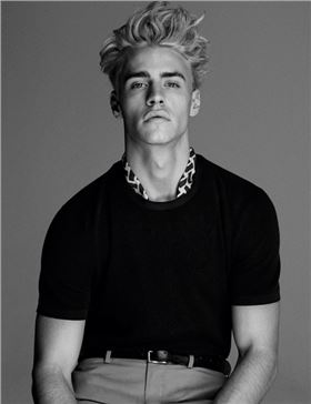 白色棉質條子短袖襯衣 兩色菱形圖案羊毛背心 白色拉鏈細節修身牛仔褲 均為 Dior Homme